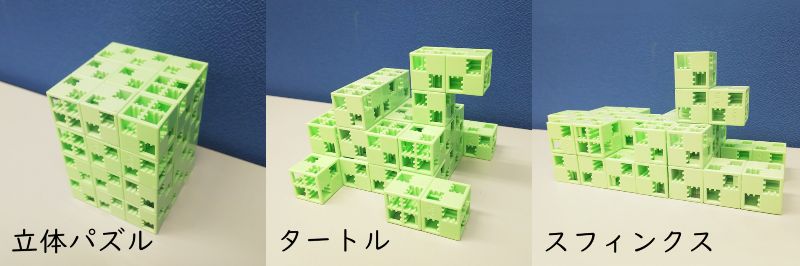 さらに子どもたちの能力を最大限高める教材が「パターンメーカー」と「立体パズル」です。パターンメーカーは「瞬間記憶=フォトグラフィックメモリー」という幼児期にのみ高い能力を有する力を低下させないためのものです。フラッシュカードを用い、図形認知能力を高めます。この図形認知能力の育成としてさらに、立体パズルを利用してさまざまな形を作ることで、空間的な想像力も高めていきます。